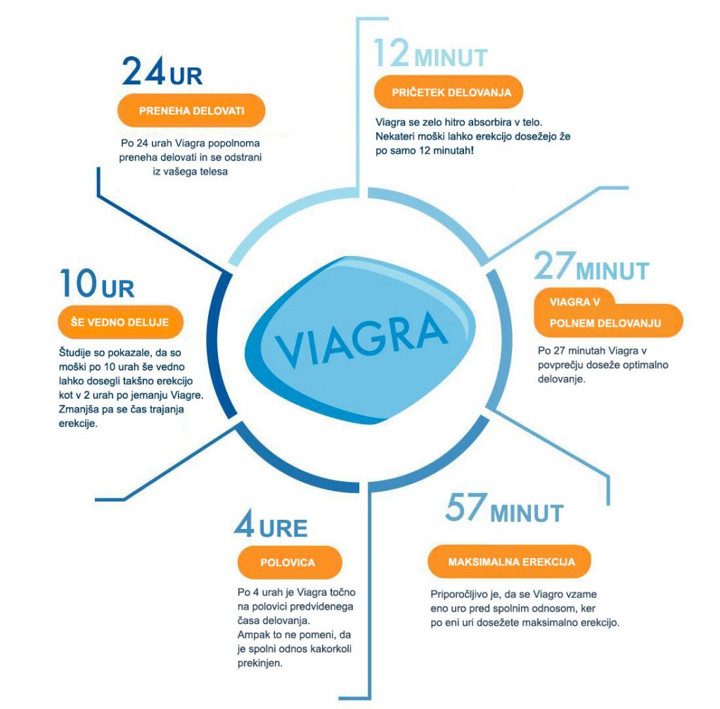 Viagra (sildenafil) se uzima u obliku tableta, obično u količini od 25 ili 50 miligrama (mg), otprilike jedan sat prije seksualne aktivnosti. Viagra se može uzimati u rasponu od pola sata do četiri sata prije seksa.